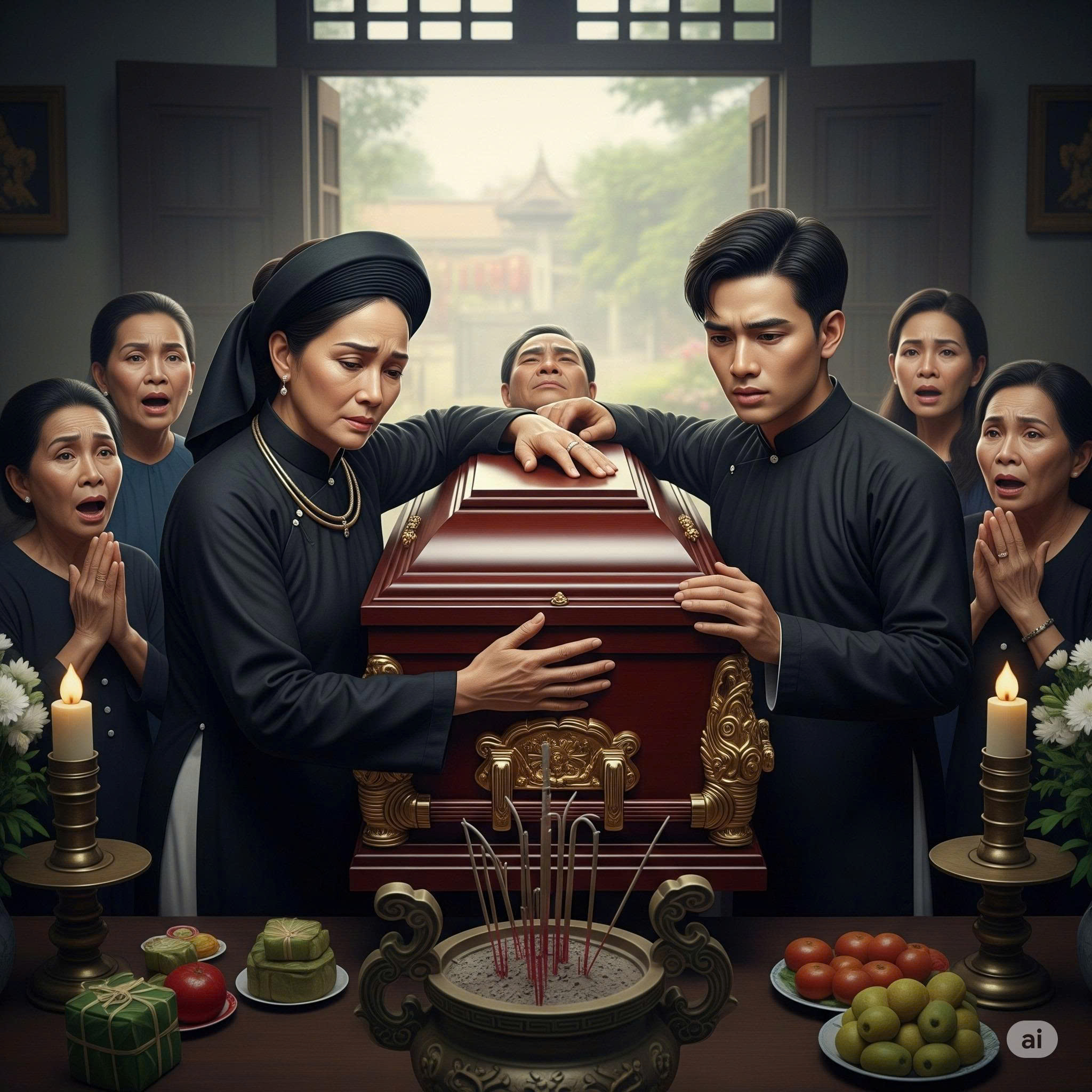 Nhưng khi quan tài được đưa đi, Vân mới bước ra, tay cầm một tờ giấy đã ố vàng và một chiếc điện thoại cũ kỹ. Cô mở loa, bật lên một đoạn ghi âm — giọng chồng cô, run rẩy và yếu ớt: