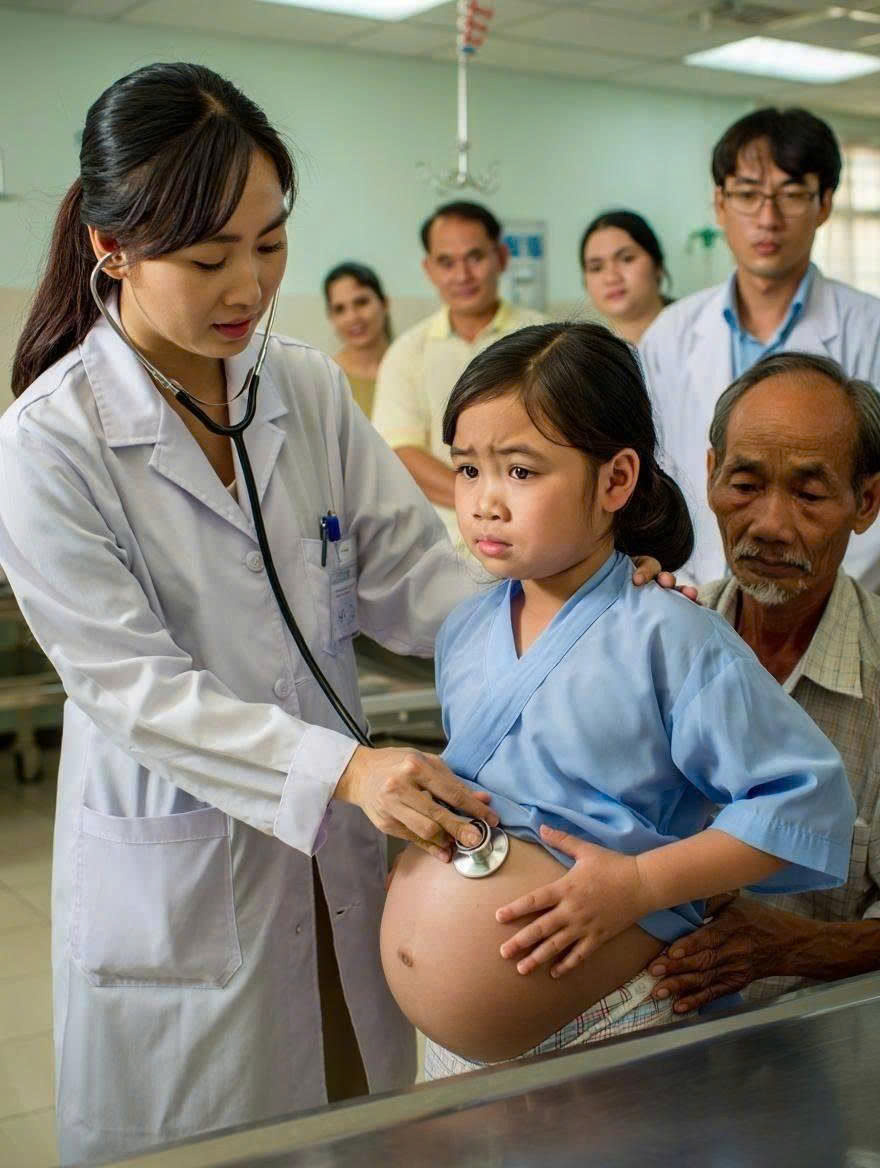 “Cô ơi, con đau… đau chỗ này…” – tay bé chỉ về vùng bụng dưới, đôi mắt long lanh nhưng đầy sợ hãi.