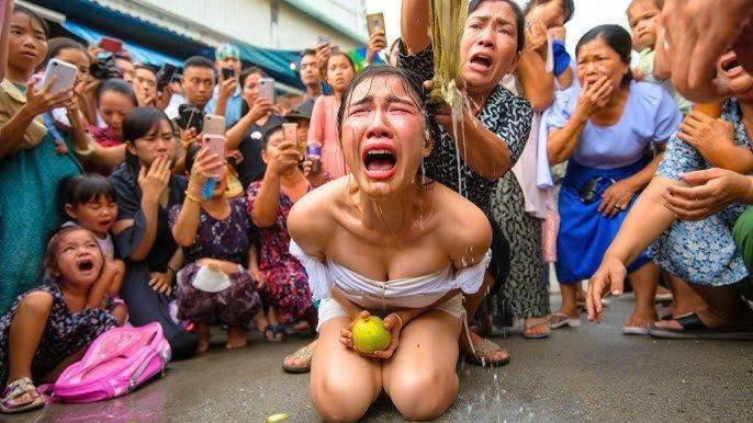 Tiếng “roạt” vang lên giữa chợ. Mảnh vải đứt tung, chiếc váy bị xé toạc khiến Hạnh đứng chết lặng. Cả khu chợ im bặt trong vài giây, rồi những tiếng xì xào, xuýt xoa vang lên khắp nơi.