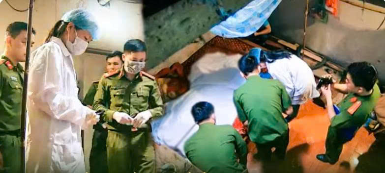 Trên giường, chăn màn xộc xệch, cổ nạn nhân có vết bầm tím — dấu hiệu bị bóp cổ đến chết.