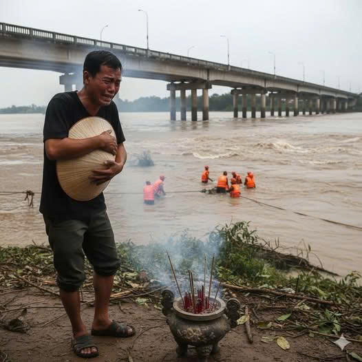Khúc sông vẫn cuộn chảy, như nhạo báng sự nhỏ bé của con người trước thiên tai. Và tôi, một người chồng, một người cha, chỉ còn biết gục xuống giữa tiếng gào khóc của chính mình, mang theo nỗi ân hận suốt đời.